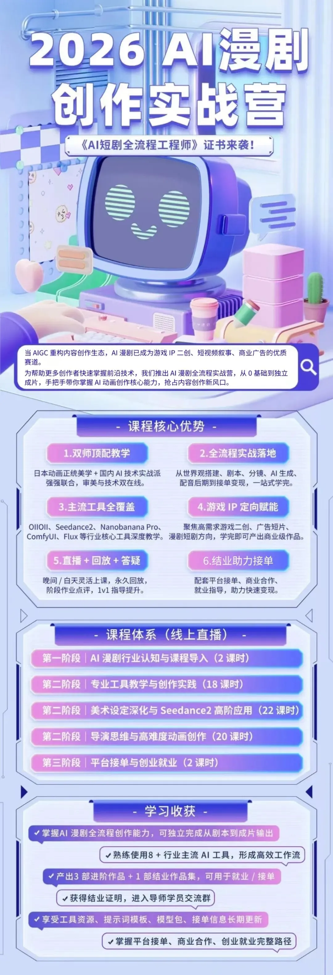 掌握了AI短剧相关技能,还可入驻短剧制作平台、自由职业平台,稳定获取长期订单,实现居家灵活创收。