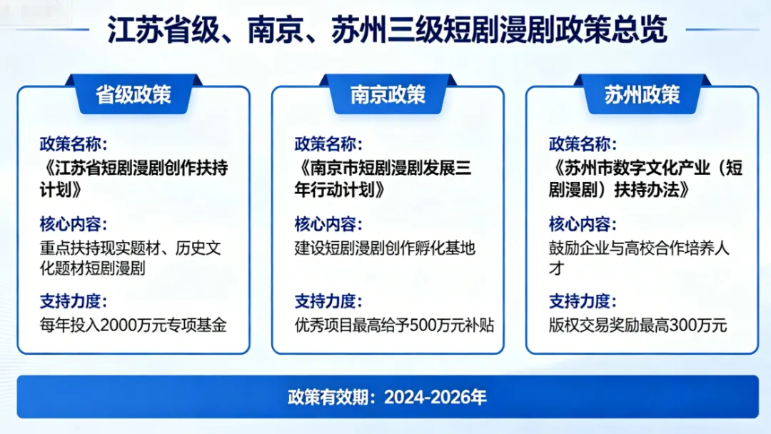 江苏短剧 / 漫剧扶持政策全解(2026|省级 + 南京 + 苏州)